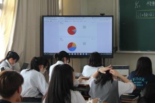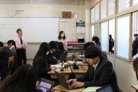 なお、この授業は県教育研修センター初任者研修講座の一環として実施されました。参観された先生方からは、対話を通して課題の解決策を熱心に考察する本校生の姿について、高く評価する言葉をいただきました。