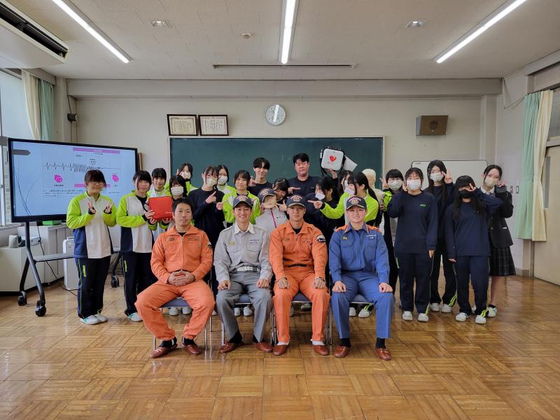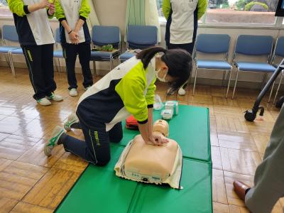 今日は、生活デザイン科ヒューマンサービスコースの3年生が、AEDの正しい使用法等を学びました。
