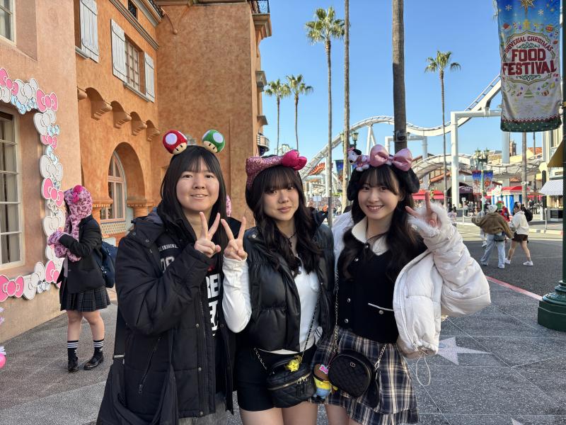 朝の8:30からユニバーサルスタジオジャパン(USJ)による自由行動となり、各自3〜4人のグループで研修活動を行いました。空も透き通った青空で、雨の心配は一切ありませんでした。各自乗り物に乗ったり、食べ物を楽しんだ様子でした。
