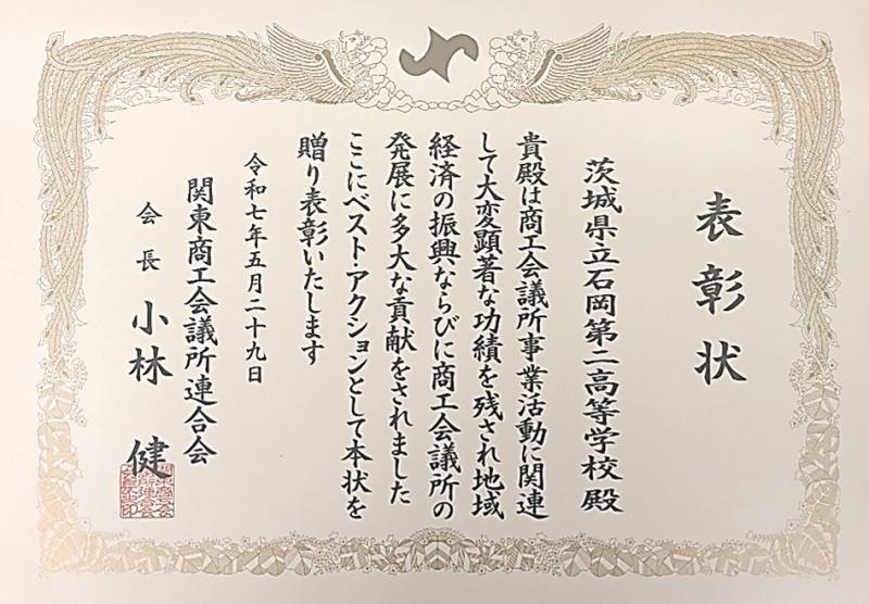 この度、本校が関東商工会議所連合会の「ベスト・アクション表彰」を受賞いたしました。