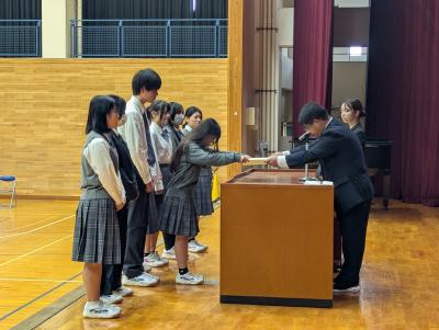 令和7年度後期・令和8年度前期生徒会の任命式が行われました。