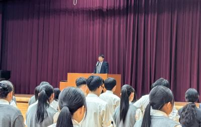 任命の後、前生徒会長から挨拶があり、始業式と任命式が終了しました。