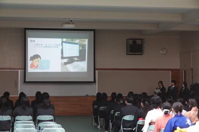 「情報コース」では、まずコースで取得を目指せる資格や生活デザイン科の3年間の実習や講習の様子を紹介したり、食物コースの研究の様子をVlogにまとめたりした動画を発表しました。