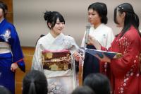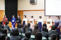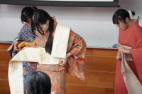 「着付けコース」では、帯結びや袴の着付けの自装の様子を披露したり、着付けを通して学んだことや着付けている着物について紹介を行ったりしました。